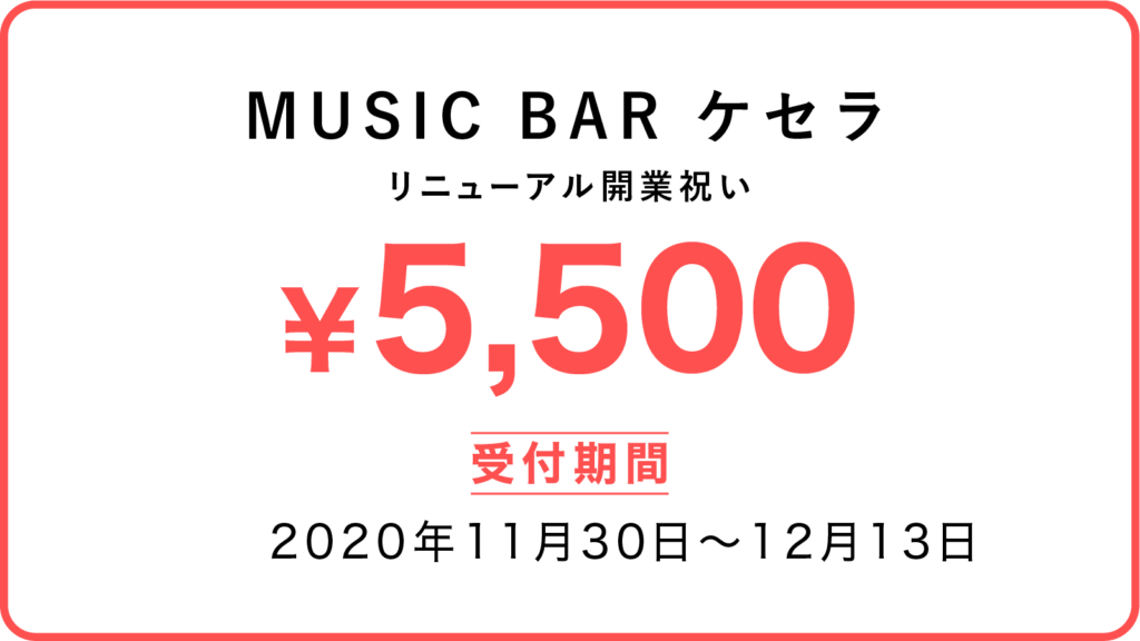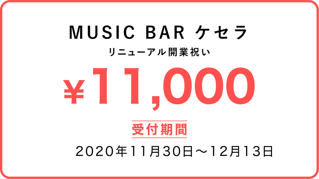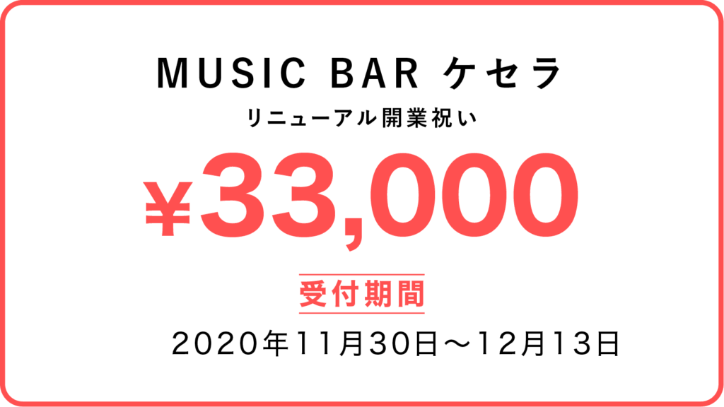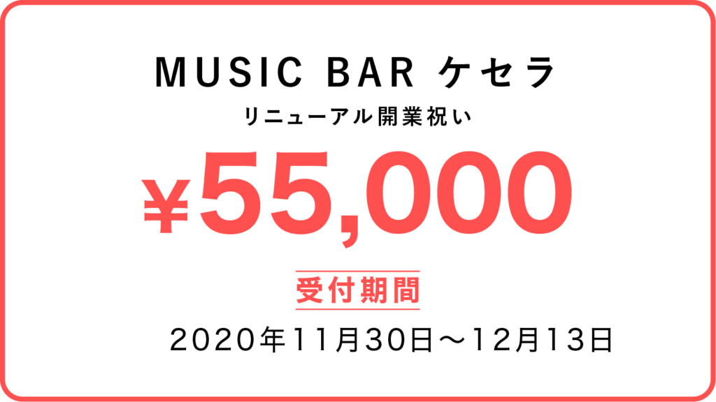 この度、ケセラがMUSIC BARへとリニューアルいたします。日頃お世話になっている皆様に今後も楽しんでいただける素敵な空間を提供できればと思っております。